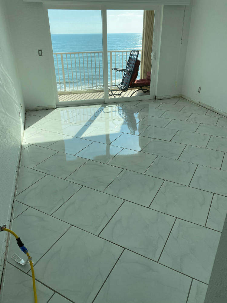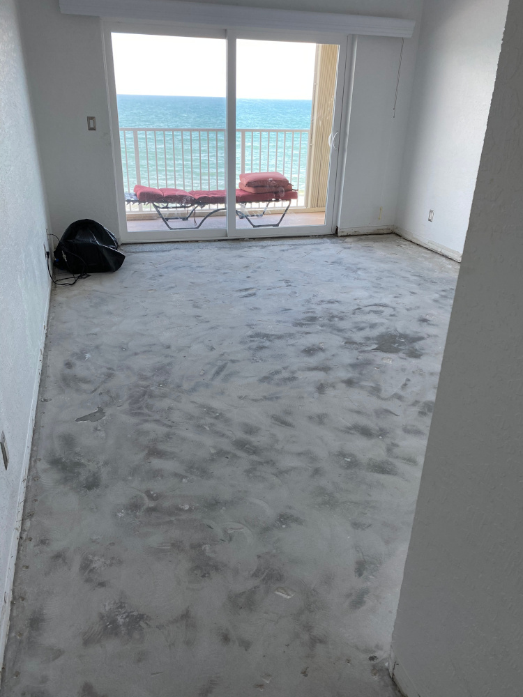 This beautiful condo in Indialantic was ready for some new floors to go with that amazing view! Our team was able to remove the tile floor quickly to prep for the new floor installation.