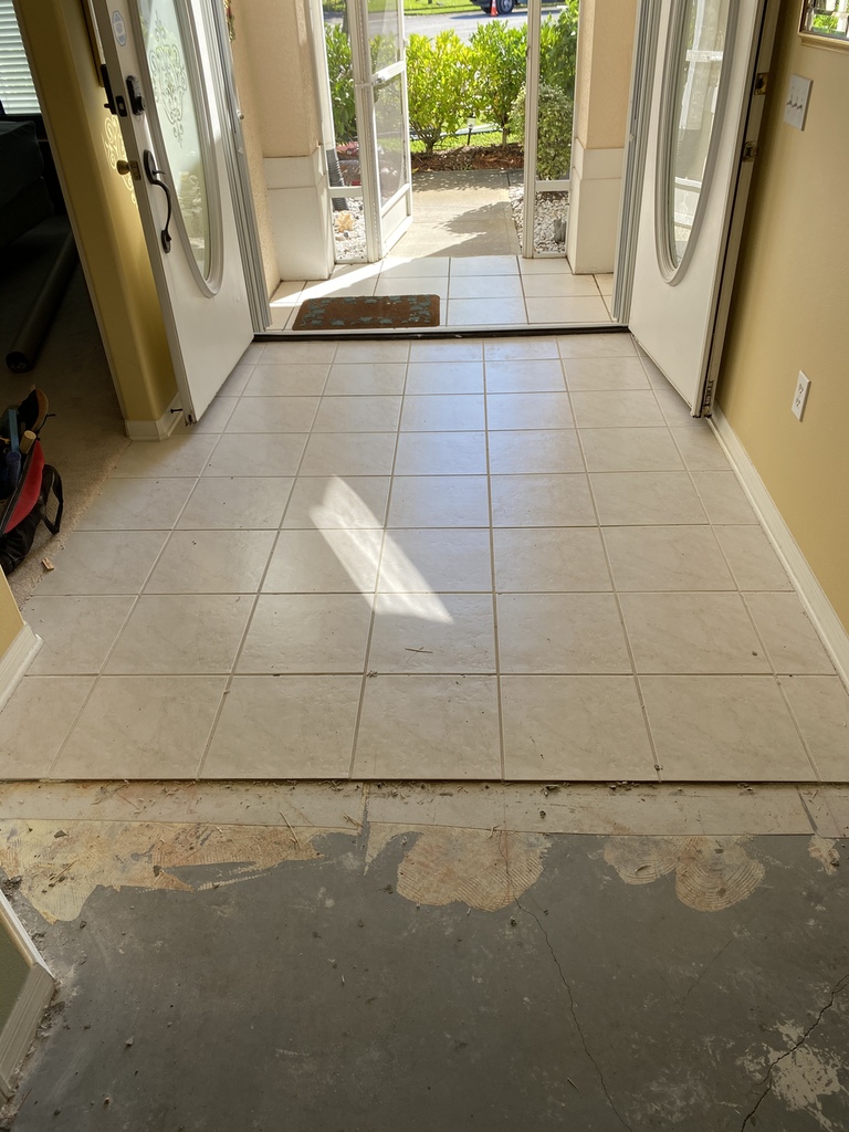 We traveled to Viera for this project. Our client had several areas that required tile removal, including the kitchen, hallway, entry way and utility room. Our team quickly got to work and had the project completed in a 1/2 day. As you can see, we were able to completely remove all of the tiles and leave a smooth and clean surface for the new floor to be laid down on.