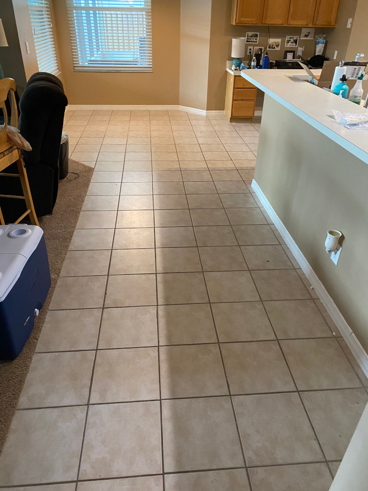 For this project, our team was called to a home in Rockledge, Florida. We removed the tile floor in the dining room and kitchen, leaving a smooth, clean surface ready for the new floor to be installed.